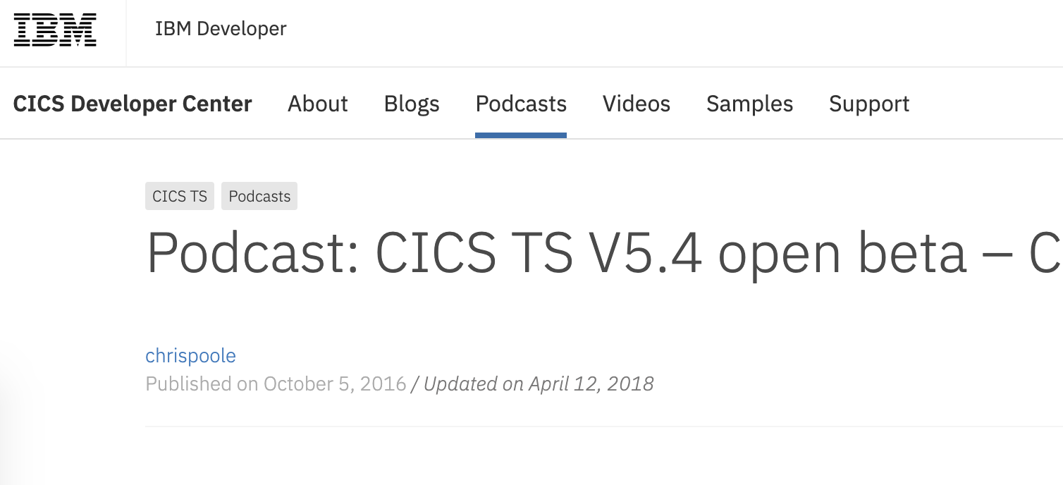 I was interviewed on a podcast, talking about the concepts of microservices in CICS and why they are a valuable new capability in the CICS TS V5.4 open beta. Have a listen, and check out the other CICS-related episodes.